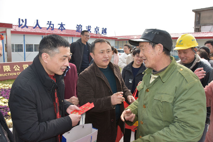 2019年2月5日己亥年春節(jié)大年初一,公司法人代表、總經(jīng)理尚超軍,公司黨委書記徐向峰一行,來到通呂運河水利樞紐工程項目部,看望和慰問春節(jié)期間堅守在一線的項目管理人員、施工作業(yè)人員及家屬,并現(xiàn)場分發(fā)了新年紅包和慰問品,向他們致以新春的問候和美好的祝福,向全力支持員工工作的家屬表示誠摯的感謝。