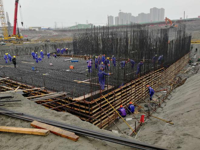 因?yàn)樗こ痰奶厥庑裕▍芜\(yùn)河水利樞紐工程必須在5月底主汛期來臨前完成水下部分施工,實(shí)現(xiàn)通水目標(biāo),搶抓工期成為貫穿整個施工過程的關(guān)鍵詞。自開工以來,現(xiàn)場最多的天氣便是下雨,據(jù)統(tǒng)計(jì),自12月以來,雨水天氣達(dá)51天。為了確保通水目標(biāo)按期實(shí)現(xiàn),以及年底前完成主體工程計(jì)劃任務(wù),在連續(xù)下雨、前期因清淤困難減緩了施工進(jìn)度等不利情況下,自主體基坑開挖后,項(xiàng)目部便開始積極組織工人加班加點(diǎn),沒有過絲毫的放松和懈怠,在參建各方的一致努力下,最終將原計(jì)劃于2月25日澆筑的泵站底板提前到了2月16日實(shí)施,從而為后續(xù)施工爭取到了更多的機(jī)動時間。目前節(jié)制閘1#、2#、3#底板及泵站已澆筑完成,待泵站工程搶出地面后,最后澆筑節(jié)制閘4#底板,進(jìn)而完成主體基面以下部分施工。目前現(xiàn)場施工人員接近三百人,我們搶抓有利天氣,有序進(jìn)行土方、管樁、水泥攪拌樁、主體結(jié)構(gòu)鋼筋、模板等平行施工作業(yè),工作面全面展開,后續(xù)總體施工進(jìn)度已處于可控狀態(tài),我們向著順利完成水下驗(yàn)收的目標(biāo)又邁出了堅(jiān)實(shí)有力的一步。