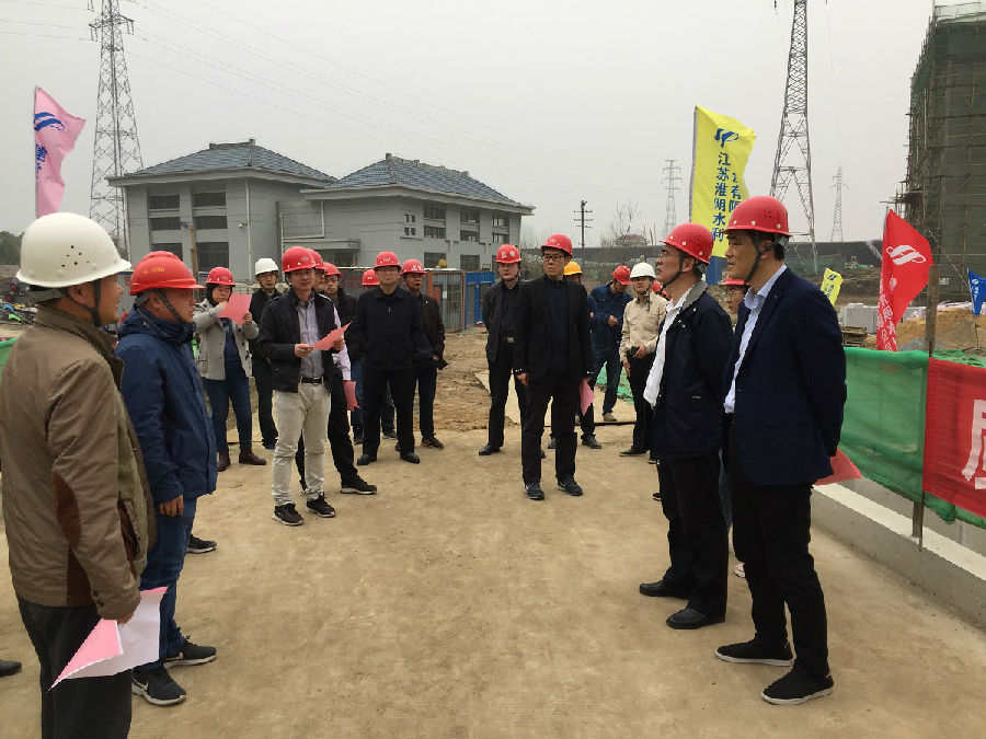 2019年3月21日,水利部建安中心總工程師熊平、建設(shè)司基建處副處長陳何鎧一行在安徽省水利廳工程建設(shè)處處長周建春、蕪湖市水務(wù)局局長王津華、水務(wù)局副局長王峰、蕪湖市鏡湖區(qū)農(nóng)水局孫科長等人陪同下,視察我公司承建的袁澤橋泵站建筑安裝工程。