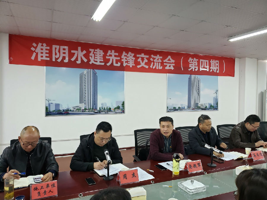 2019年4月29日下午,第四期“淮陰水建先鋒交流會”在通海大廈建設(shè)處成功舉辦。公司黨委班子成員、五個支部部分黨員、通海大廈臨時黨支部以及建設(shè)處全體成員、2019年入黨積極分子代表、通海大廈建設(shè)施工單位負(fù)責(zé)人參加了會議。